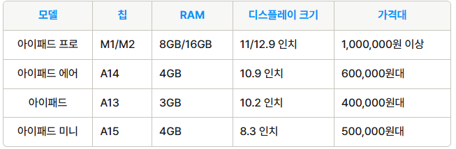 아이패드 모델별 특징